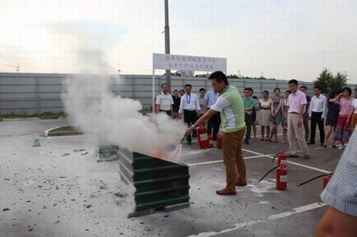 演练现场,党委书记刘夏平首先向全体员工传达了商务部及集团安全工作要求,并就我公司安全生产工作的开展进行了布置和分工,指出格林伍德目前的消防工作的重点是地下仓库,要严格遵守消防防火要求,一刻不能放松。随后,安全生产具体执行部门——物业部员工张宁为全体员工讲解了“灭火器的使用规范”和“消防栓的使用注意事项”,指导员工如何正确使用灭火器、消防栓扑灭明火。最后,现场燃起预先准备好的火堆,每位员工都亲身使用干粉灭火器进行了现场扑救,并学习了如何安装、使用消防水枪。