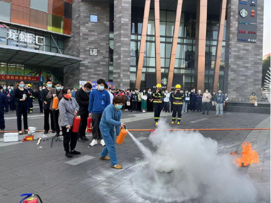 习近平总书记在党的二十大报告中强调的“推进安全生产风险专项整治,加强重点行业、重点领域安全监管”,是关口前移、防线前置的科学部署,是标本兼治、查险除患的有力举措。为宣传贯彻党的二十大精神,抓紧抓实抓细年终岁末安全生产工作,教育引导全体商户、公司员工切实将消防安全责任抗在肩上、落在行动上,11月8日,在第31个全国消防日来临之际,南京公司组织全体商户、员工开展了一场以“火灾无情 警钟长鸣 勤于防火 共建共防”为主题的消防安全应急演练及技能培训,共有近200名商户和员工参与。此次消防演练成立了专门的指挥部,并邀请了秦淮区、秦虹街道相关领导作现场指导。