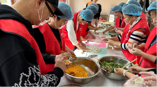为了让独居老人能吃上立冬的饺子,天刚蒙蒙亮,城邦社“爱心厨房”里就热闹起来,“城邦社”党团员服务队和爱心大姨们开始忙碌气来,大家戴好口罩、头套及一次性手套,仔细地摘菜、和面、调制饺子馅、包饺子,每个步骤相互协作,井然有序,根据老人们的口味,饺子馅有牛肉、胡萝卜、大葱等多种食材,既营养丰富又美味可口。每一个饺子都仿佛是一件小小的工艺品,它们形态各异,或饱满圆润,或褶皱分明,大家将满满的心意包进饺子里。