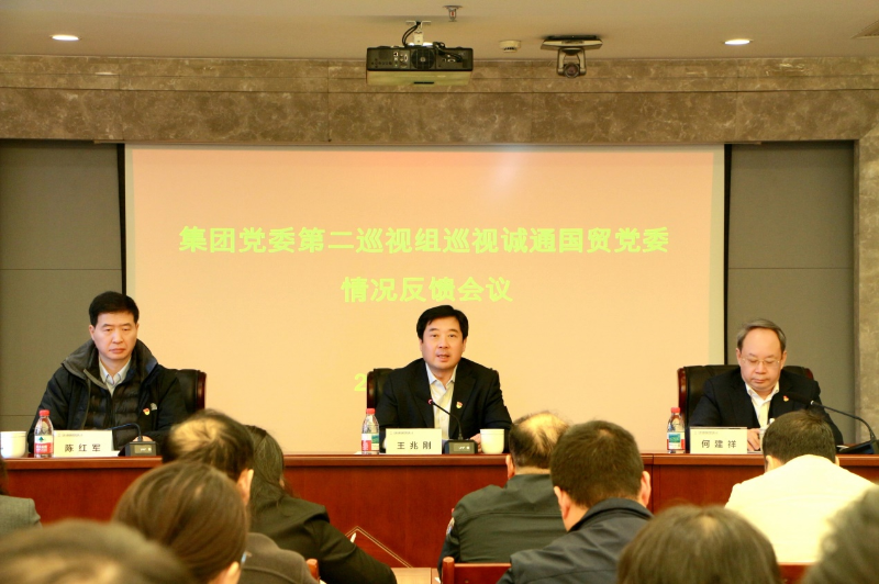 根据集团党委统一部署,2月9日,集团党委第二巡视组向中国诚通国际贸易有限公司(以下简称诚通国贸)党委反馈巡视情况。集团党委委员、纪委书记王兆刚出席会议并讲话,集团党委第二巡视组组长陈红军反馈巡视情况,诚通国贸党委书记、董事长何建祥主持会议并就做好巡视整改工作作表态发言。